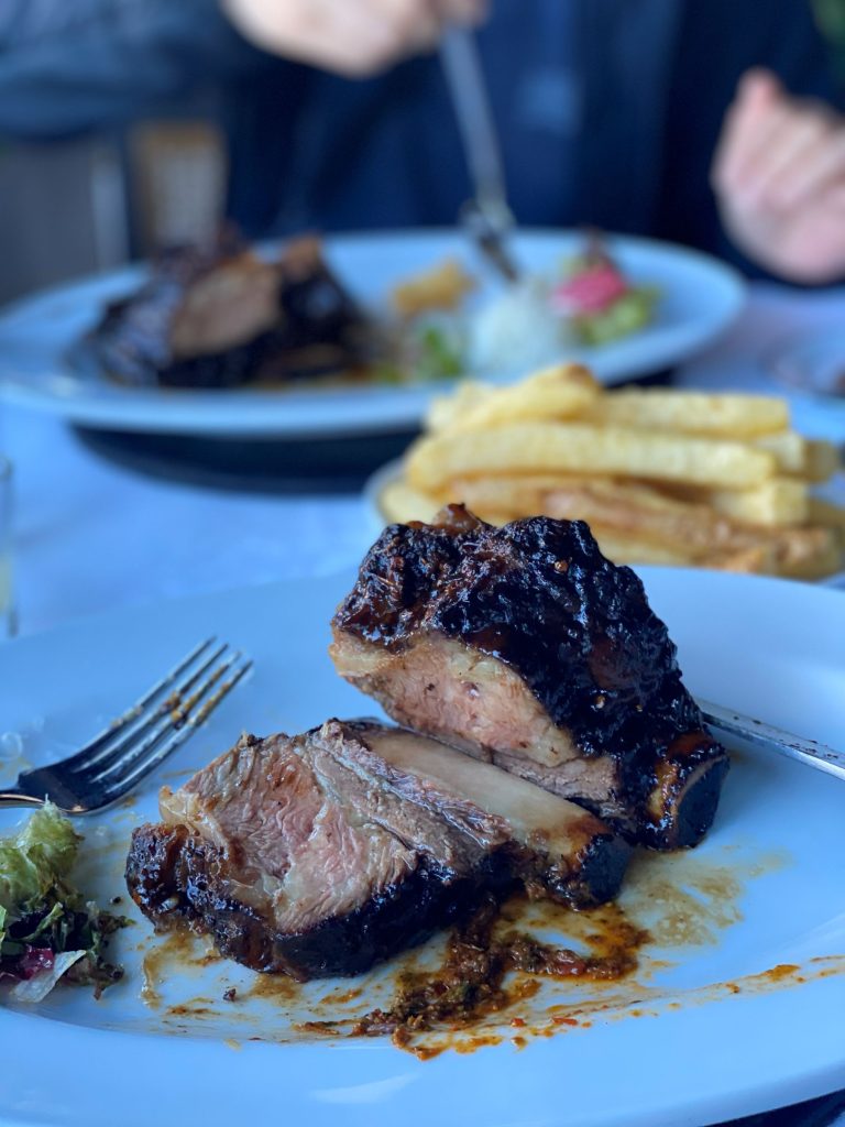 散歩をする。運河沿いの赤レンガの建物には飲食店が並んでいる。はじめのブエノスアイレス観光で、ガイドさんに勧められたカラファテのジャム、アイス、子羊の丸焼き、ステーキ。食べていないのはステーキだけだった。おいしそうなステーキ店に入り14時間じっくりと焼いたプライムリブをいただく。