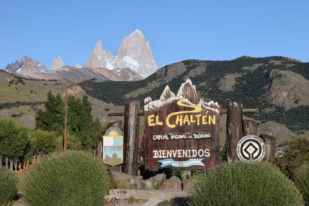 帰りにエルチャルテンの街の入口にある、看板の前で記念撮影。