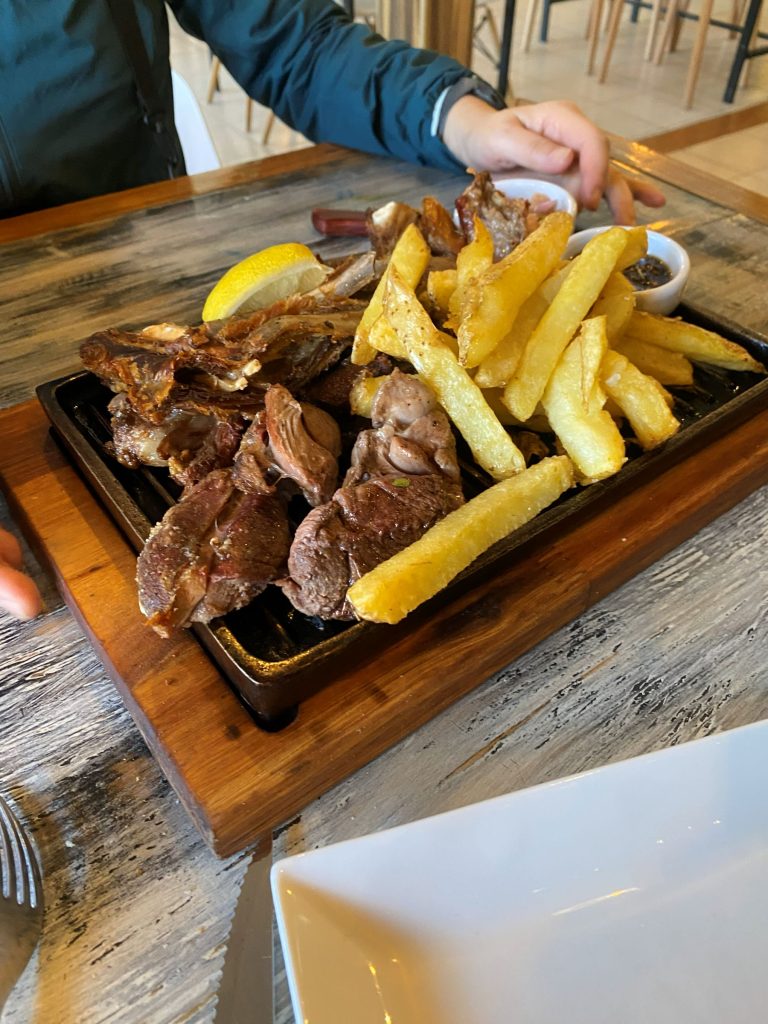 大量のラム肉がポテトとともに来る。じっくりと薪で焼いた子羊は、柔らかく、ジューシーで、臭みもなく、周囲はパリパリで、とてもおいしい。