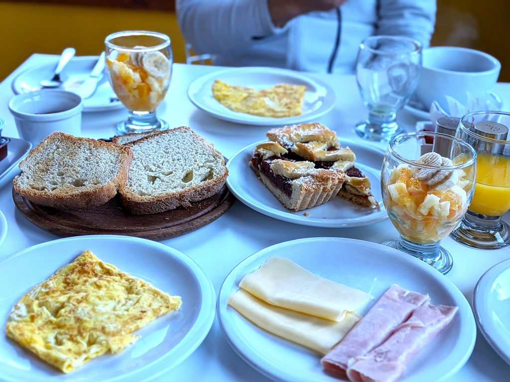 ダイナミックな自然の変化を眺めた後、ホテルに帰り朝食をいただく。ハム、オムレツ、コーヒー、カットフルーツ。きれいな食堂。そして人がいい。ちなみに、アルゼンチンのコーヒーは少し癖がある。