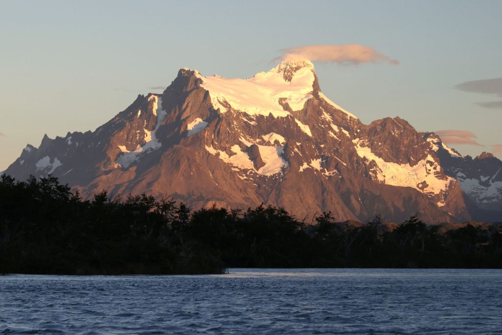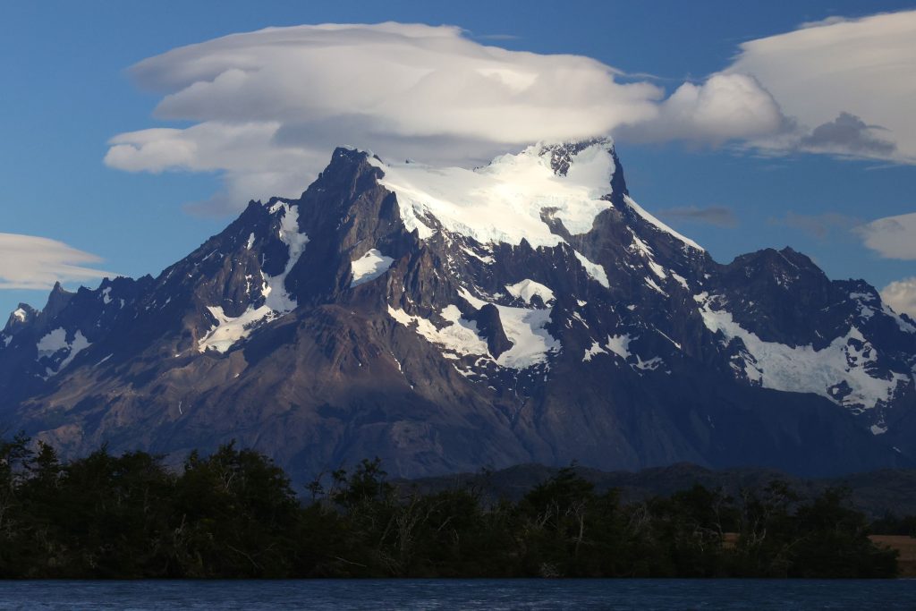 3050mパイネグランデ。頂上付近に光る氷河、これからさらに削られていくのだろう。