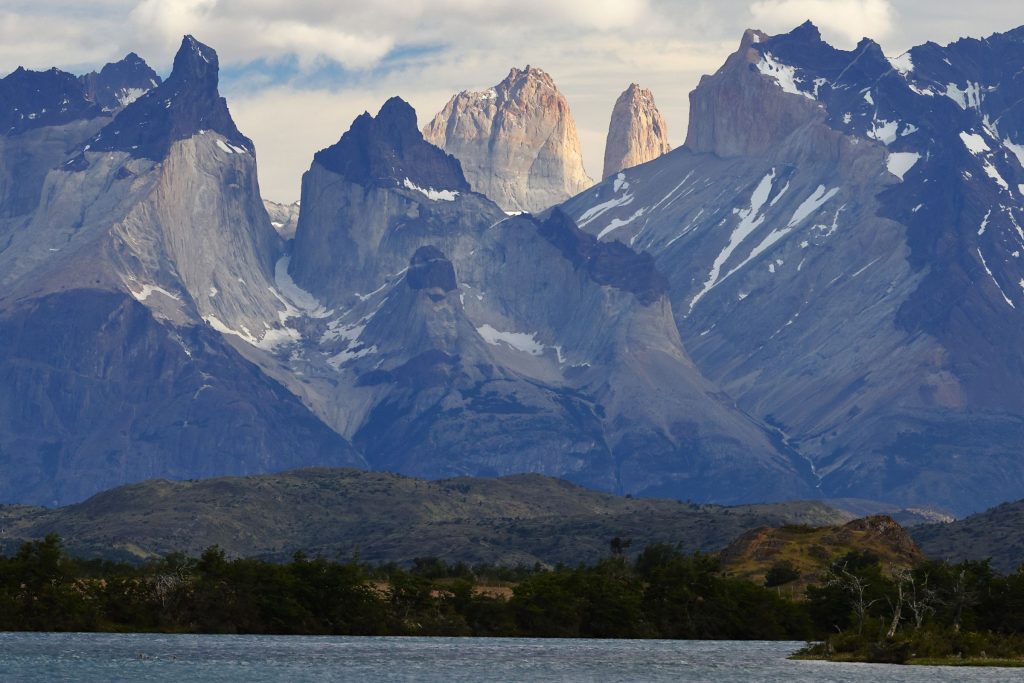 トーレスデルパイネ国立公園の山々は、南向きで、朝から、夕方までその雄姿を眺められる。