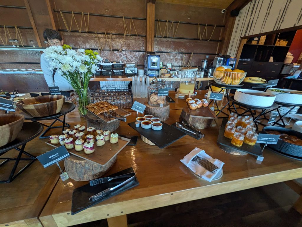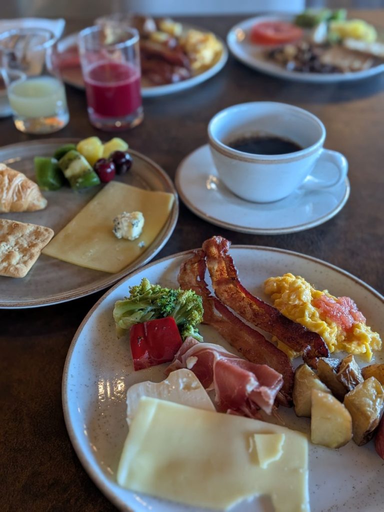 信じられないくらいに、おいしい。ベーコン、卵焼き、ソーセージ、パン、チーズ、ジャム、シリアル、牛乳、コーヒー、フレンチトースト、全てが我々の視覚と味覚を満たしてくれる。スーパーフードとやらもある。