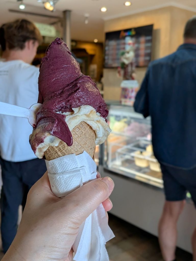 街をぶらぶらし、カラファテの実のアイスを食べる。甘すぎず、おいしい。