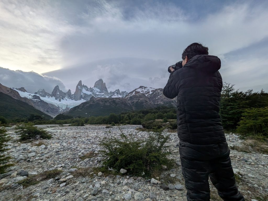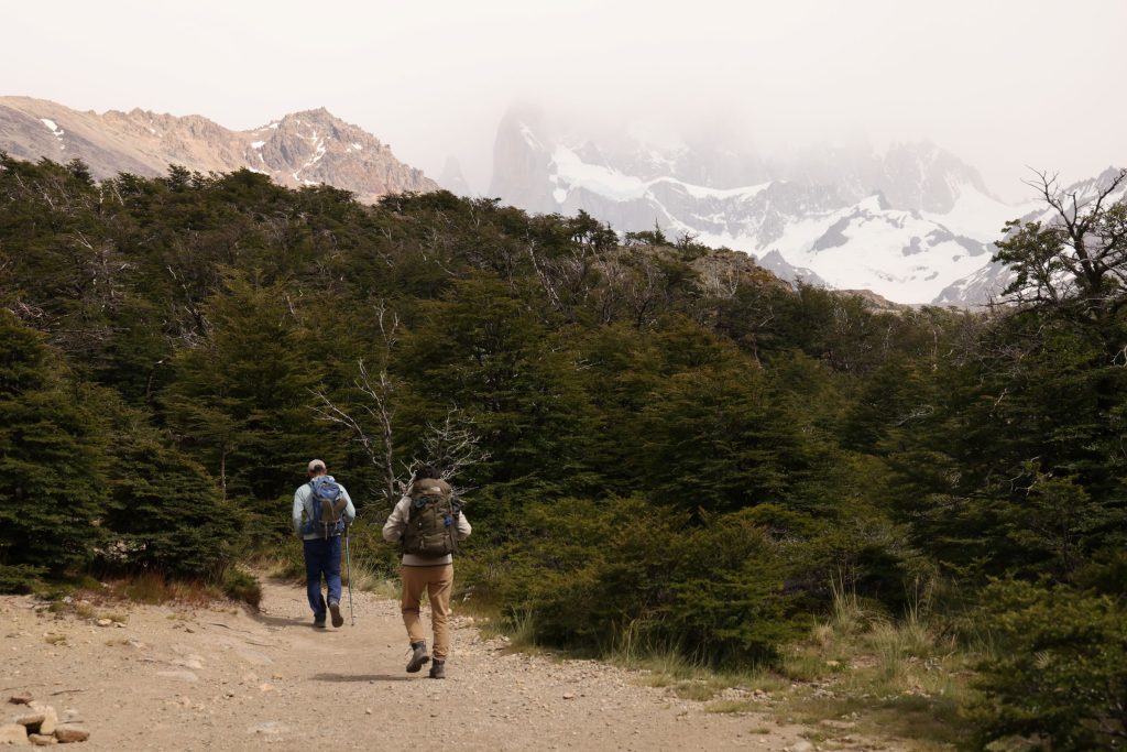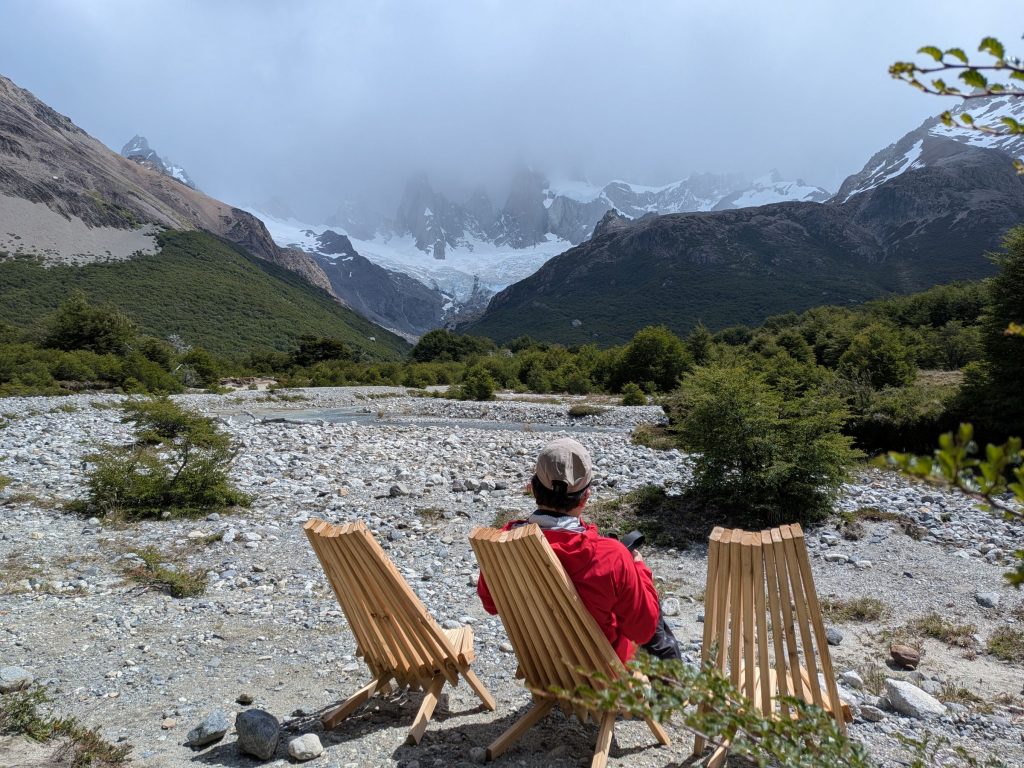 しかし、晴れる兆しはない。フィッツロイがどこにあるのかもわからないほど、雲が巻き、ふもとから流れ落ちる氷河と周囲のとげとげの山が時折見える。それでもすごい景色なのだが、心はあの山を求めている。