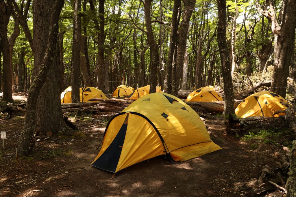 キャンプサイトには専用の夕食用の大きなテントがあり、それ以外に自分たちが居住する広めの小さな黄色のテント群がある。テントの中には寝袋が2つおいてある。