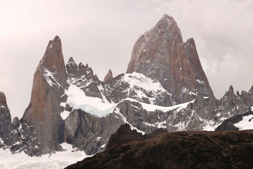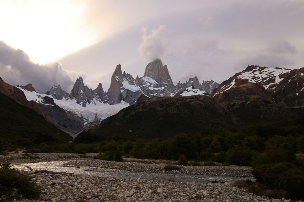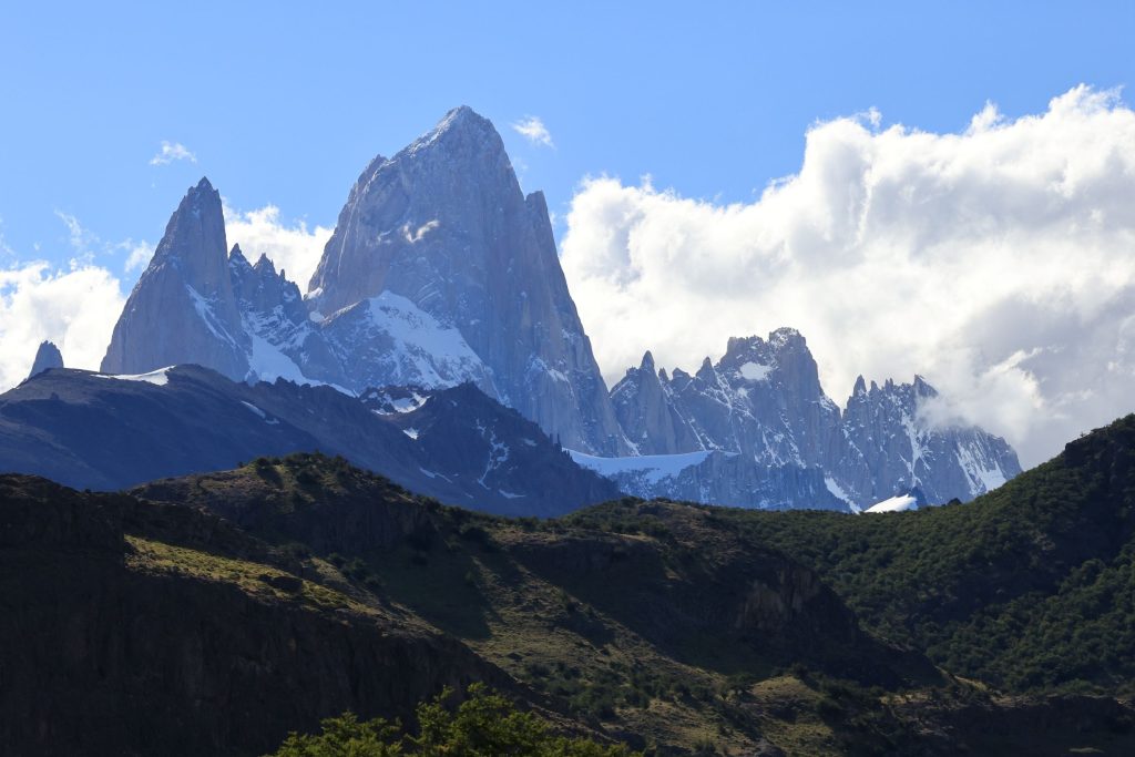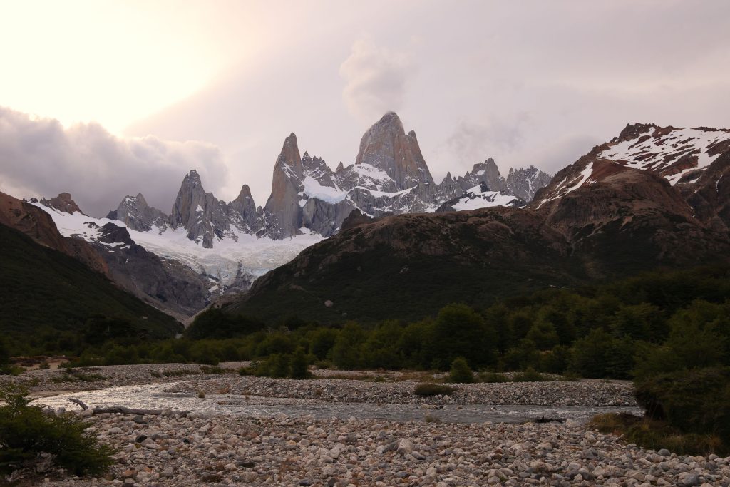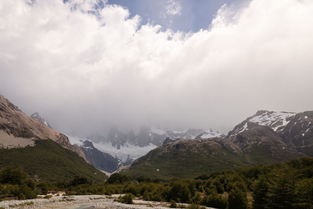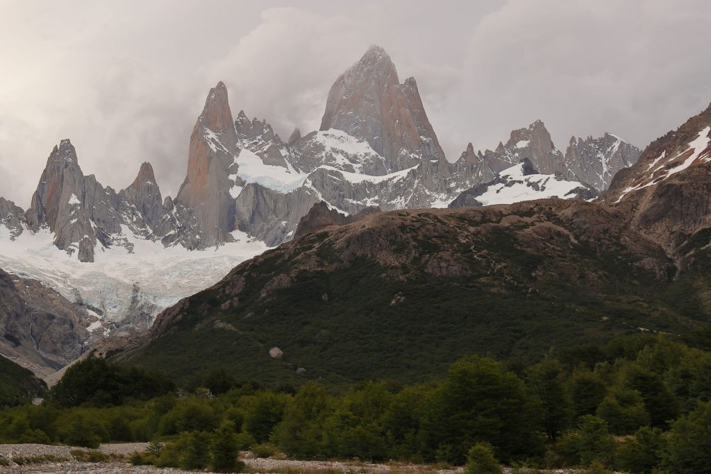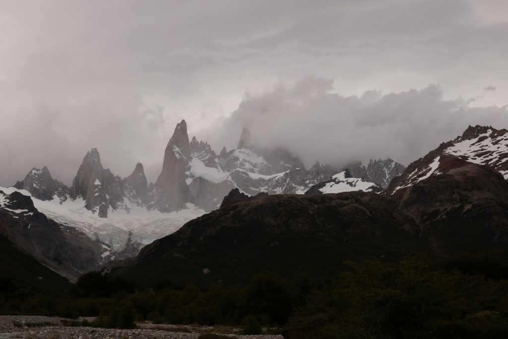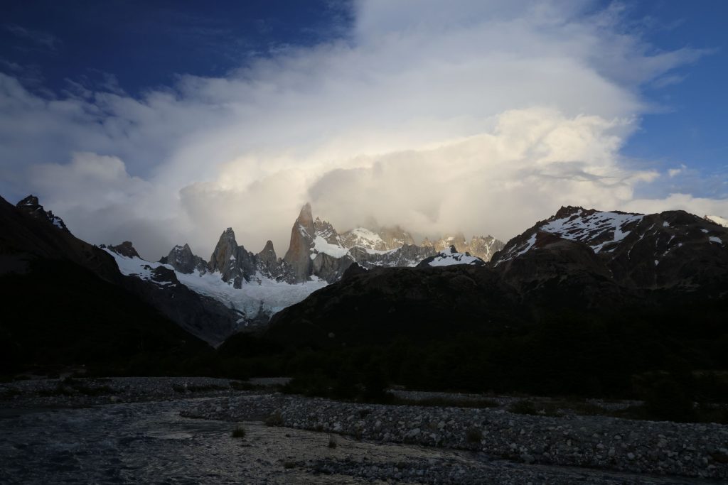 フィッツロイを中心とし、周囲に尖った山々が連なる。雲は、フィッツロイに巻き付いては去ってゆく。