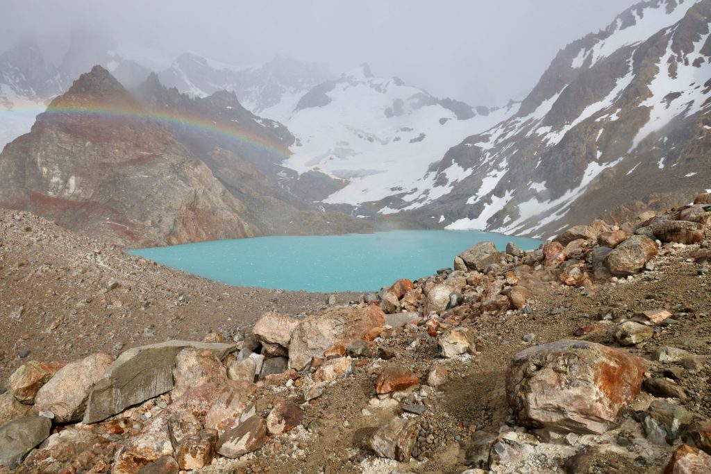 虹のかかるロストレス湖。でもゆっくり見れるような状況ではなかった。
