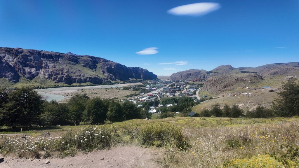 帰り道から見えるチャルテンの街。途中ずっと雨だったが、町に近づくにつれ、雨は上がっていった。